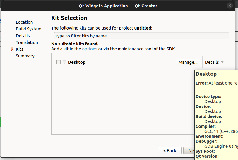 - Finally, you might need to manage your kits more directly, especially if you’re working in a specialized development environment. This could involve adding a new kit and configuring it to match your ROS2 development needs.